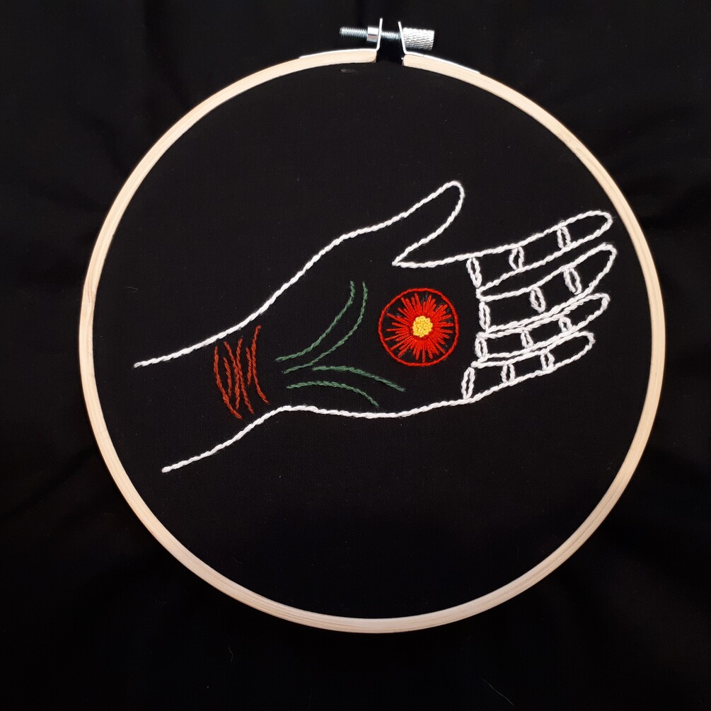 This is a digital document with detailed instructions on how to embroider a simple but beautiful pattern. The pattern is inspired by an optimistic idea that humans can create wonderful things with their hands, grow amazing things, like plants.